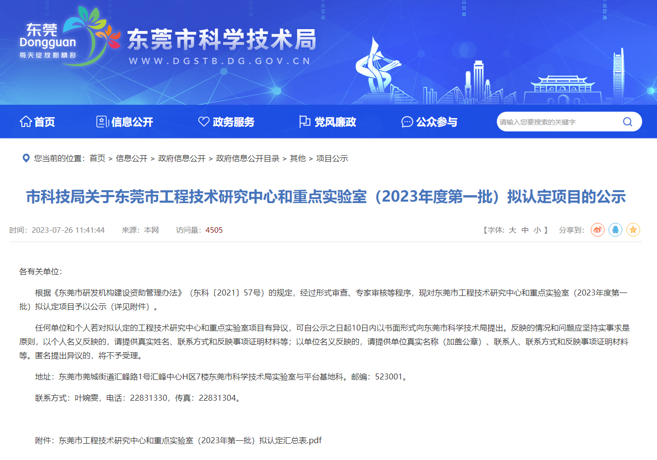 近日,东莞市科学技术局发布了《关于东莞市工程技术研究中心和重点实验室(2023年度第一批)拟认定项目的公示》(项目已过公示期),其中,由广东三鼎组建的“东莞市智慧城市工程技术研究中心”顺利通过认定。